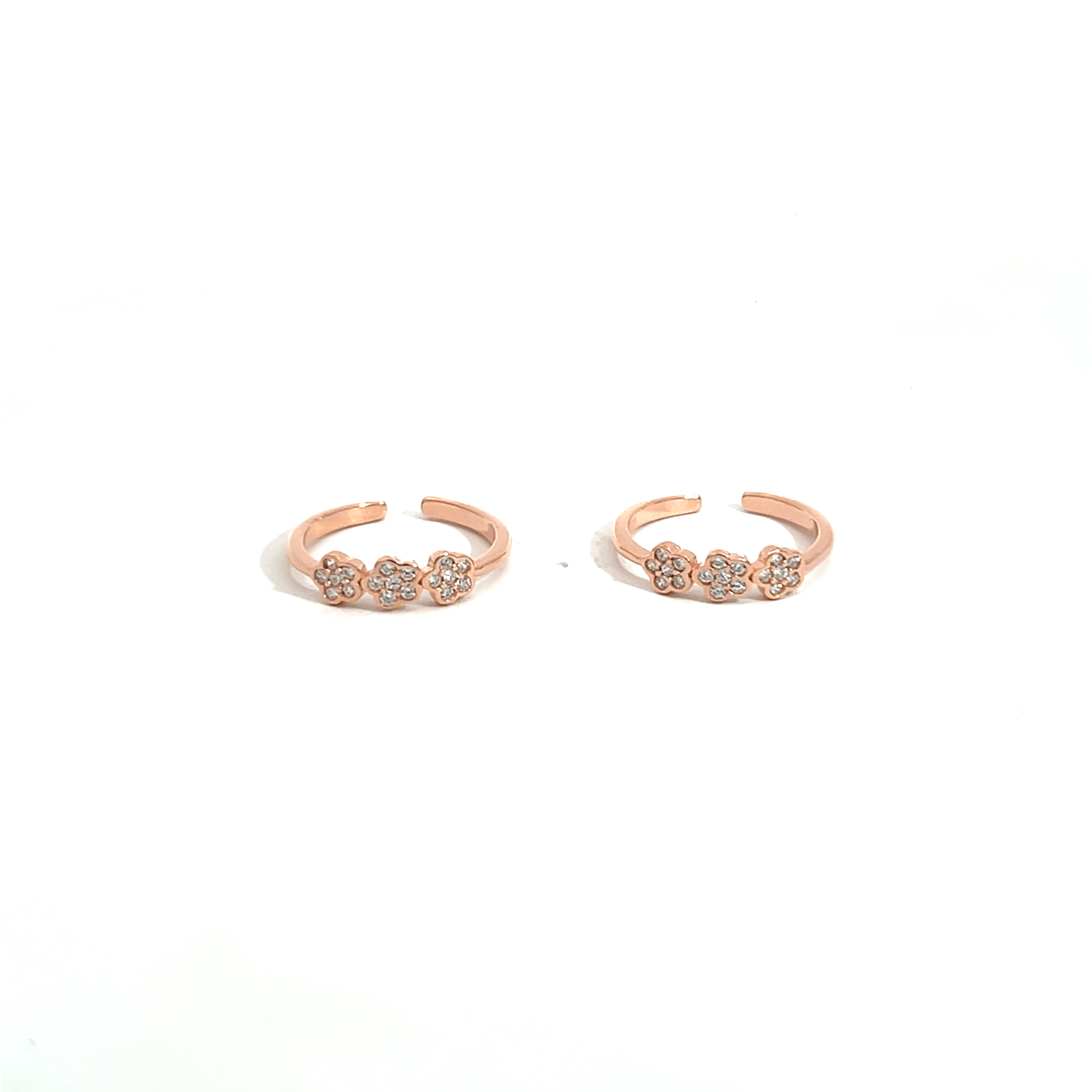 These toe rings showcase a floral design combined with the warm, flattering tone of the rose gold plating, offering a blend of classic charm and modern femininity. Their adjustable open design ensures a comfortable and secure fit on any toe, making them perfect for daily wear or adding a touch of glamour to your beach-ready look