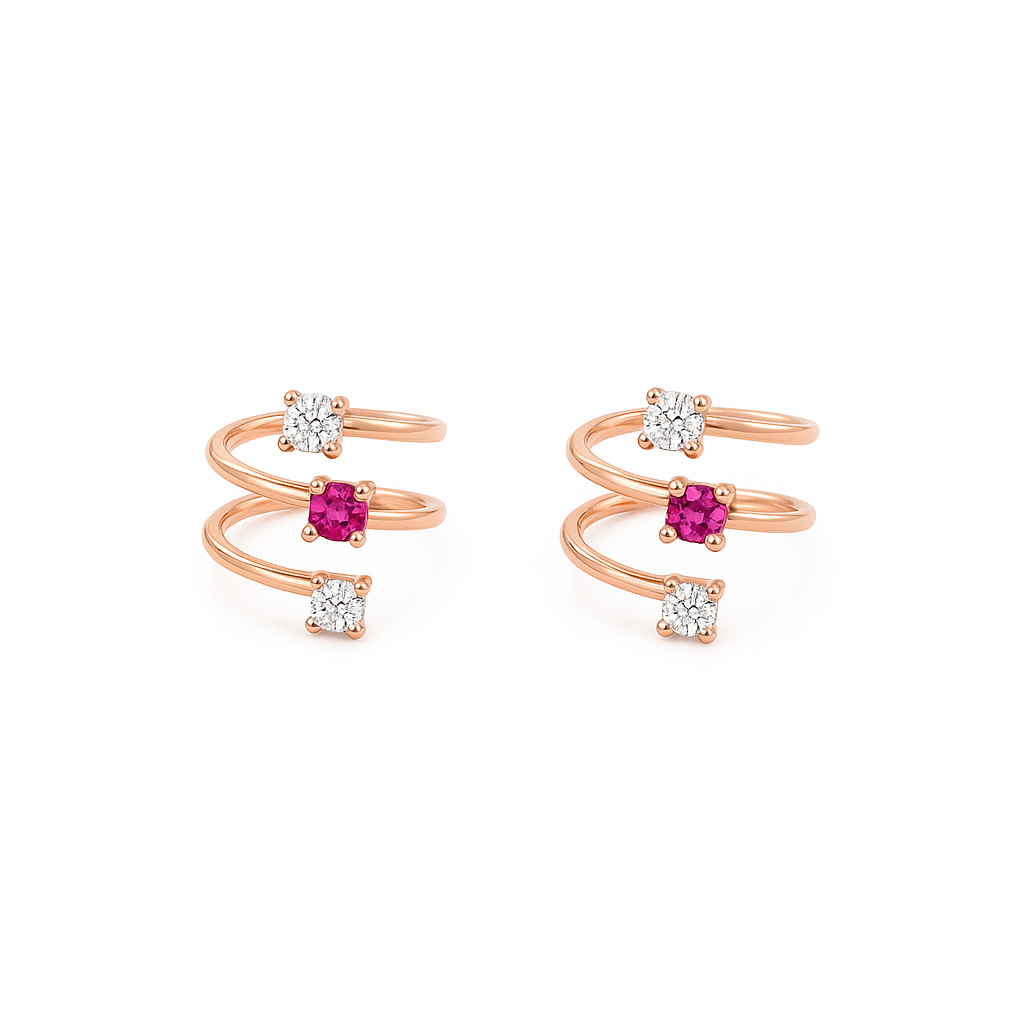 The uniquely designed toe ring features a gentle, continuous spiral that wraps comfortably around your toe, allowing for an adjustment. Each ring is embellished with a trio of dazzling cubic zirconia stones: a fiery pink gem beautifully complemented by two white stones at either end of the spiral.