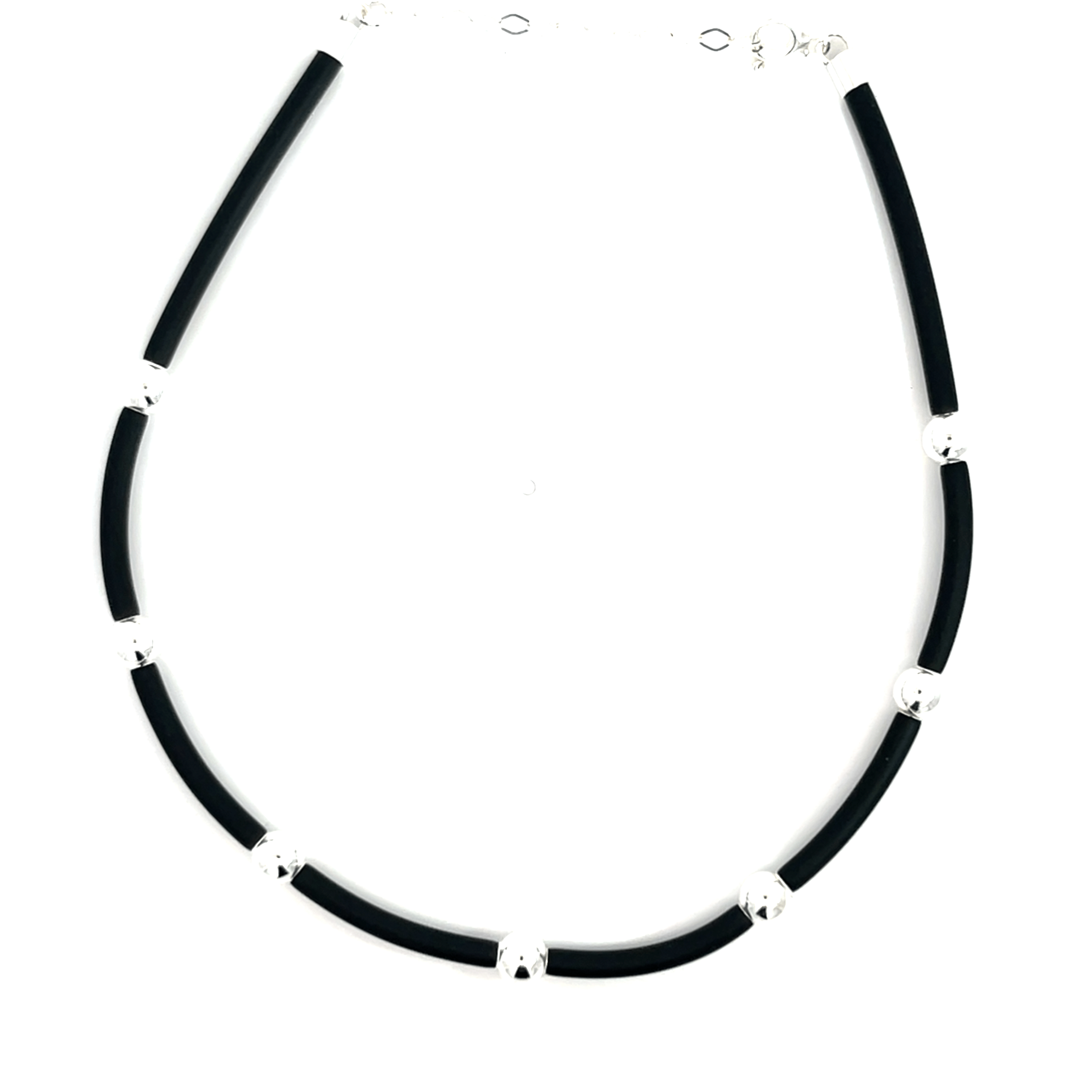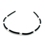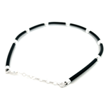 For your subtle yet striking style, this anklet is for you. The design focuses on the clean, rhythmic pattern of the silver elements against the simple black band, offering a sophisticated style. It's the ideal piece to add a contemporary metallic flash to your footwear without being overly ornate.Β A quiet statement of modern taste.