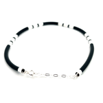 Elevate your warm-weather style with this stunning, contemporary anklet. A perfect fusion of comfort and chic design, this piece features smooth, alternating segments of matte black rubber and polished sterling silver tubing