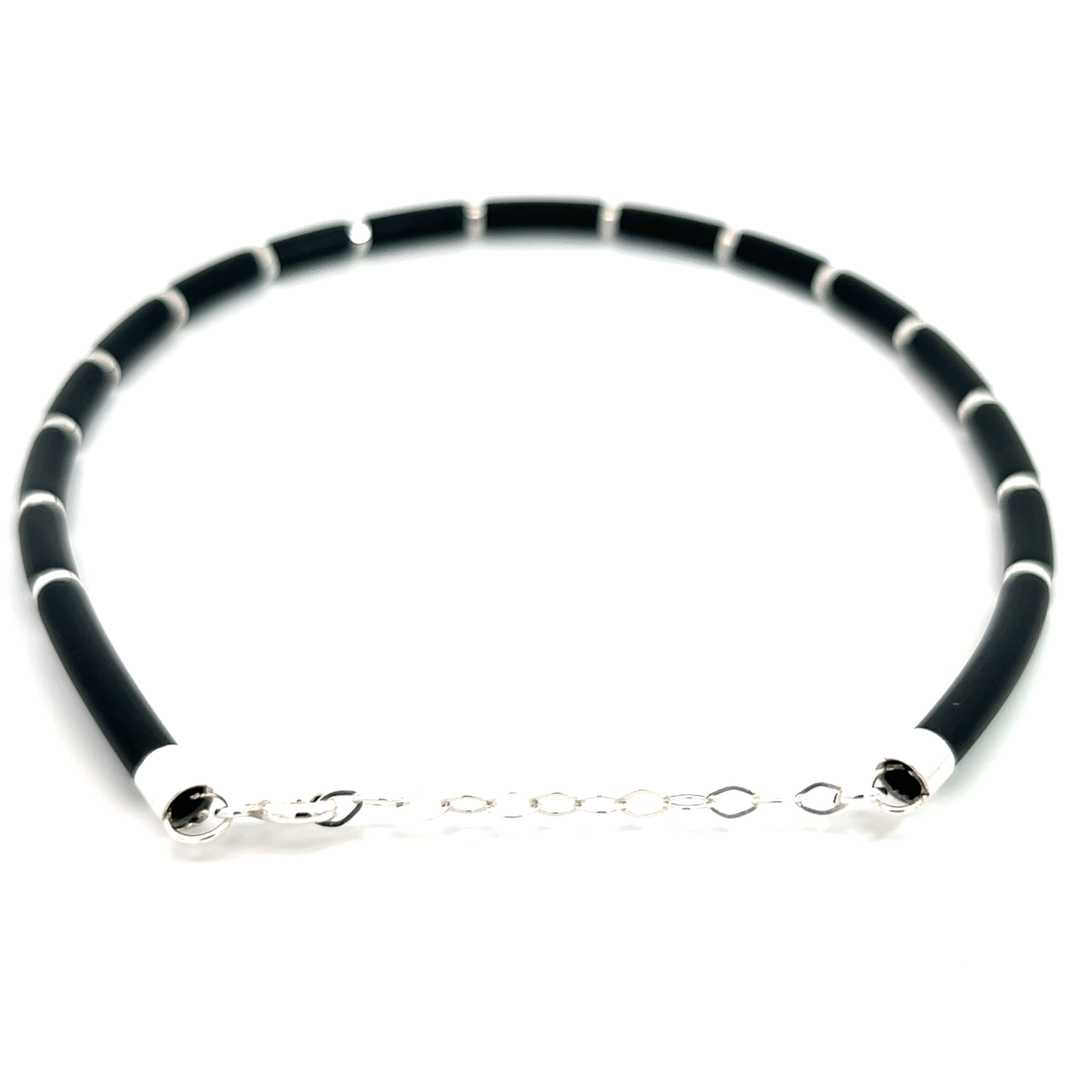 Celebrate clean lines and simple geometry with this captivating sterling silver anklet. The design features a bold sequence of alternating smooth silver, creating a striking, segmented look that is both modern and mesmerising. It's a statement piece that hugs the ankle perfectly, offering an instant upgrade to your summer footwear.
