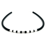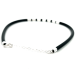 Break the mold of traditional anklets with this bold statement piece. The interplay of matte black cord and bright, reflective sterling silver segments creates an architectural look around your ankle. It offers a secure fit and stands up well to daily wear, making it your go-to accessory for injecting modern flair into any outfit.