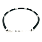 This anklet is built around a soft, durable black cord that feels great against the skin, secured by a reliable sterling silver clasp. The rhythmic arrangement of the silver pieces maintains a polished and interesting aesthetic. Wear it everywhere—from morning workouts to evening dinners—it's the perfect blend of practicality and timeless chic.